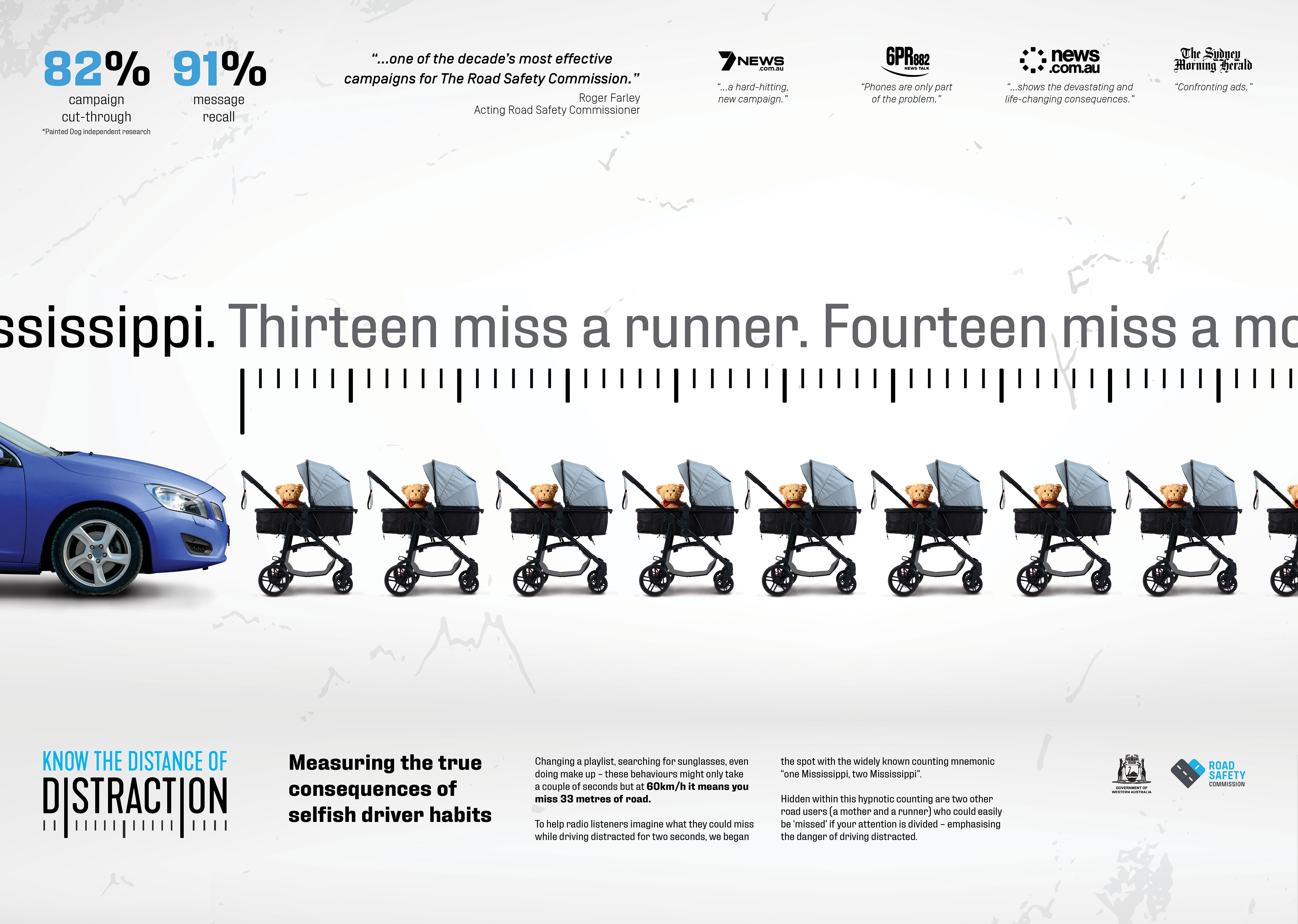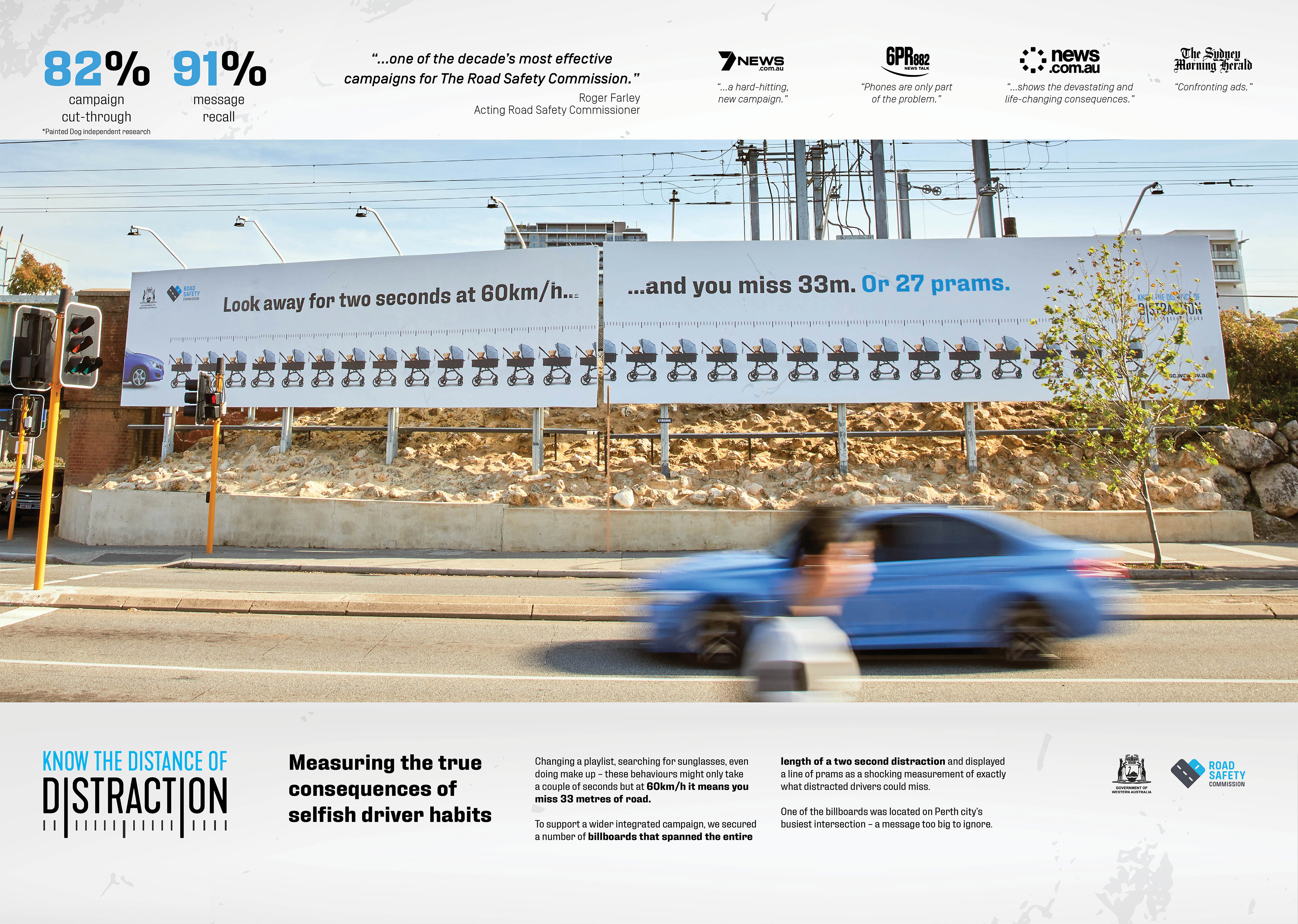 In 2018, 18% of deaths on Western Australian roads were caused by distracted drivers. While recent years have seen a focus on educating people about the dangers of texting behind the wheel, there are still many other everyday behaviours that cause drivers to lose their concentration. In collaboration with Art Director Niall Stefen and Copywriter Lachy Banton. This campaign set-outs to educate people of these lesser-known, yet equally-lethal distractions.