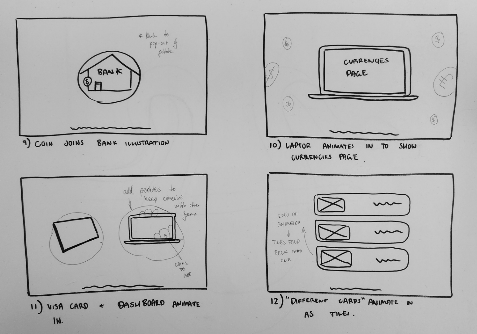 What started with 2 animations, quickly became 5, due to the granular nature of each video. Here you can see the final video 5, as well as a few of the storyboard sketches from the process.