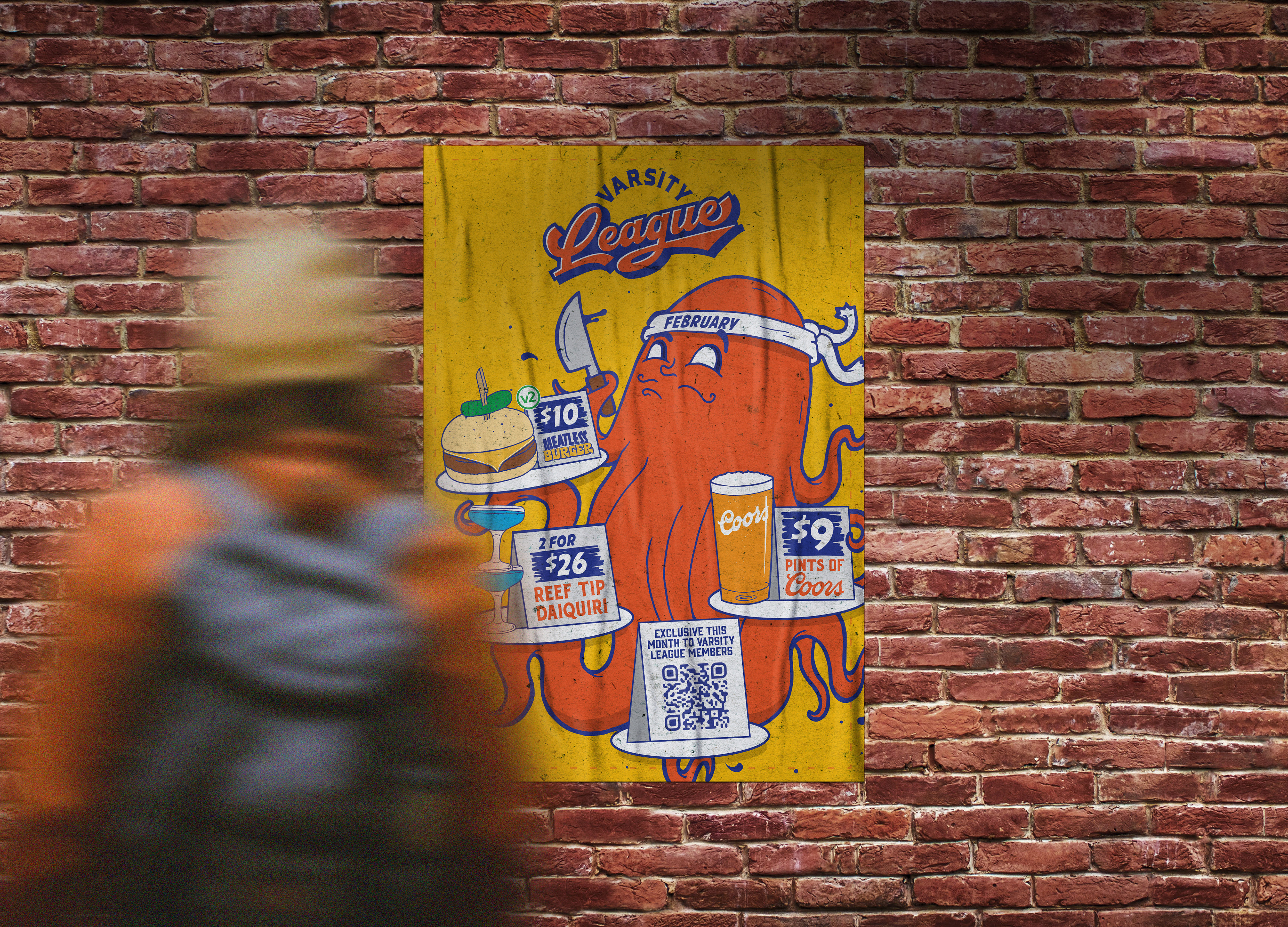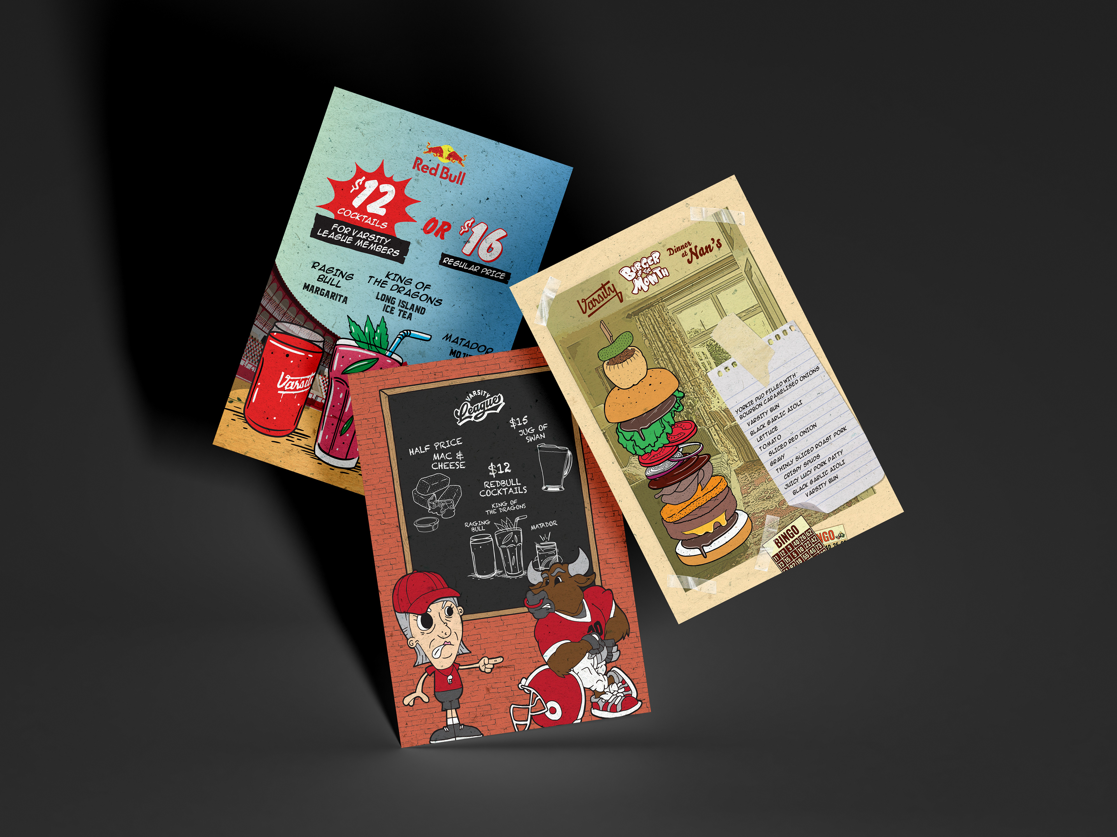 In early 2022 I jumped at the opportunity to become the sole design contractor for Varsity Burgers. As a brand that boasts a heavily illustrative identity, I was headhunted by their team for my skillset and style that compliments it.